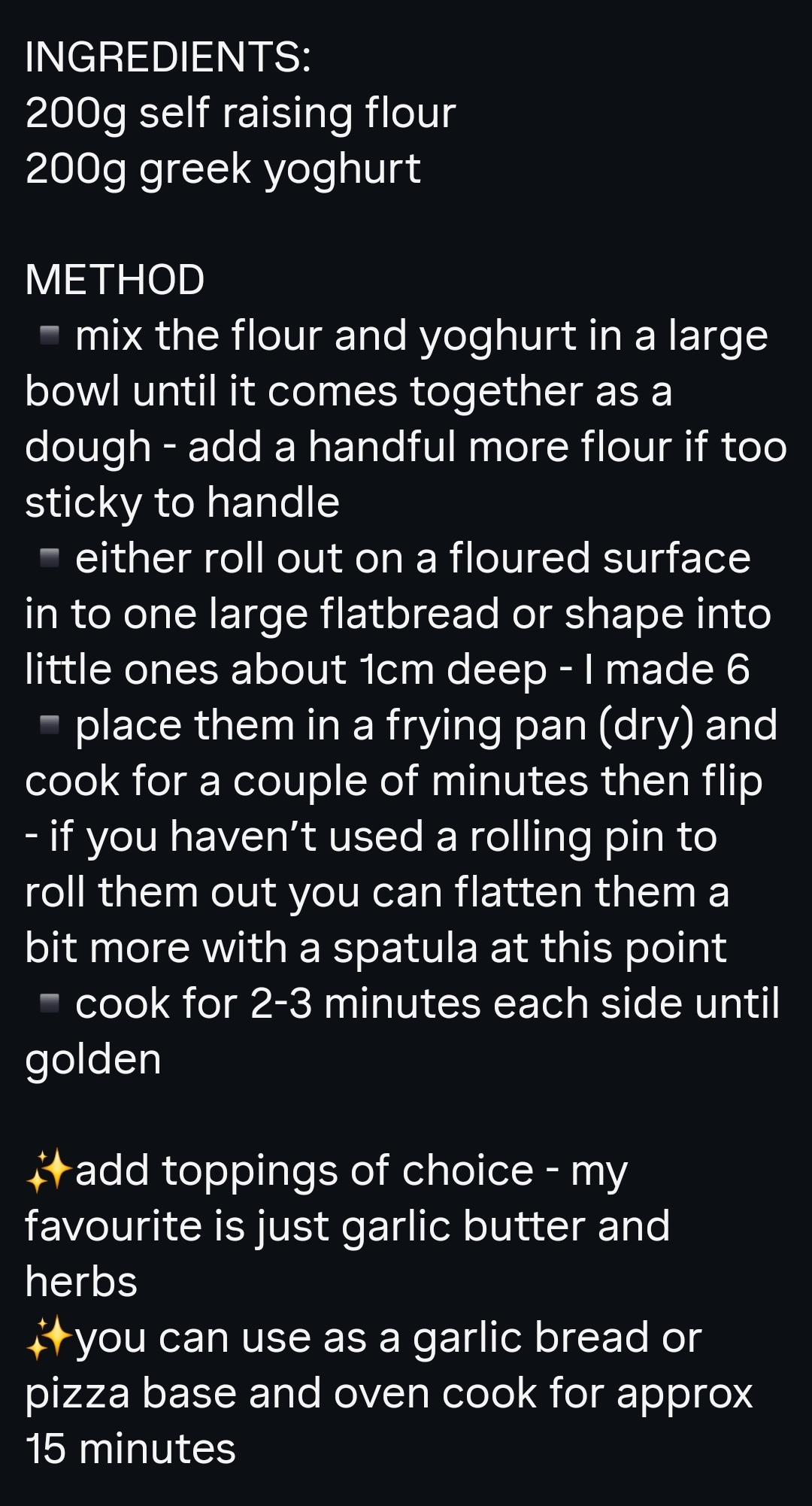 A simple flatbread recipe using self-raising flour and Greek yogurt, perfect for quick meals or as a pizza base.