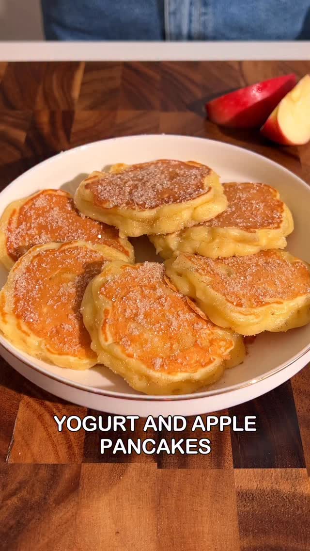 Indulge in fluffy, delightful pancakes that combine the creaminess of yogurt with the natural sweetness of fresh apples! These quick-to-make treats are ideal for whipping up a delicious breakfast feast in no time. Get ready to stack them high and savor every bite!