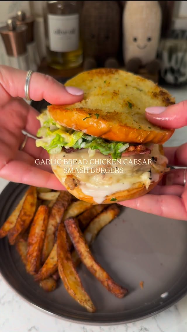 Get ready to elevate your burger game with our Garlic Bread Chicken Caesar Smash Burgers! Juicy chicken patties are perfectly seared and nestled between crispy, buttery garlic bread, topped with a fresh Caesar salad that adds a zesty crunch to every bite. This mouthwatering fusion is a flavor-packed twist that will have your taste buds dancing!