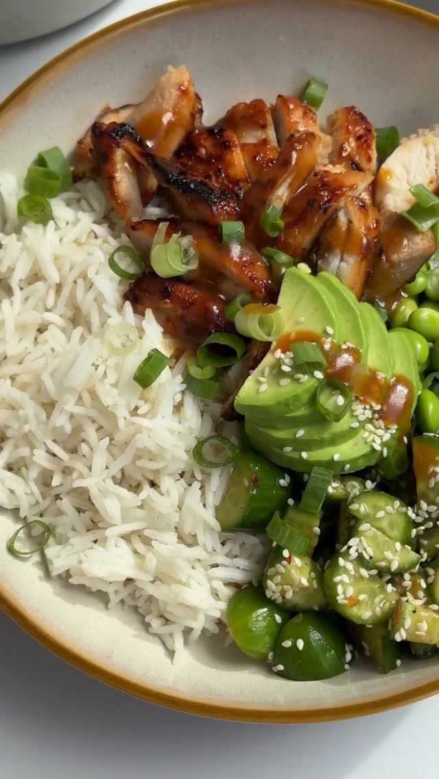 Dive into a delightful nourish bowl brimming with succulent air-fried chicken marinated in savory miso, perfectly complemented by a crisp cucumber salad and vibrant edamame. Toss in some creamy avocado and fluffy basmati rice for a satisfying, wholesome meal that’s as nourishing as it is delicious! Perfect for a quick lunch or a cozy dinner, this bowl is sure to become a new favorite!