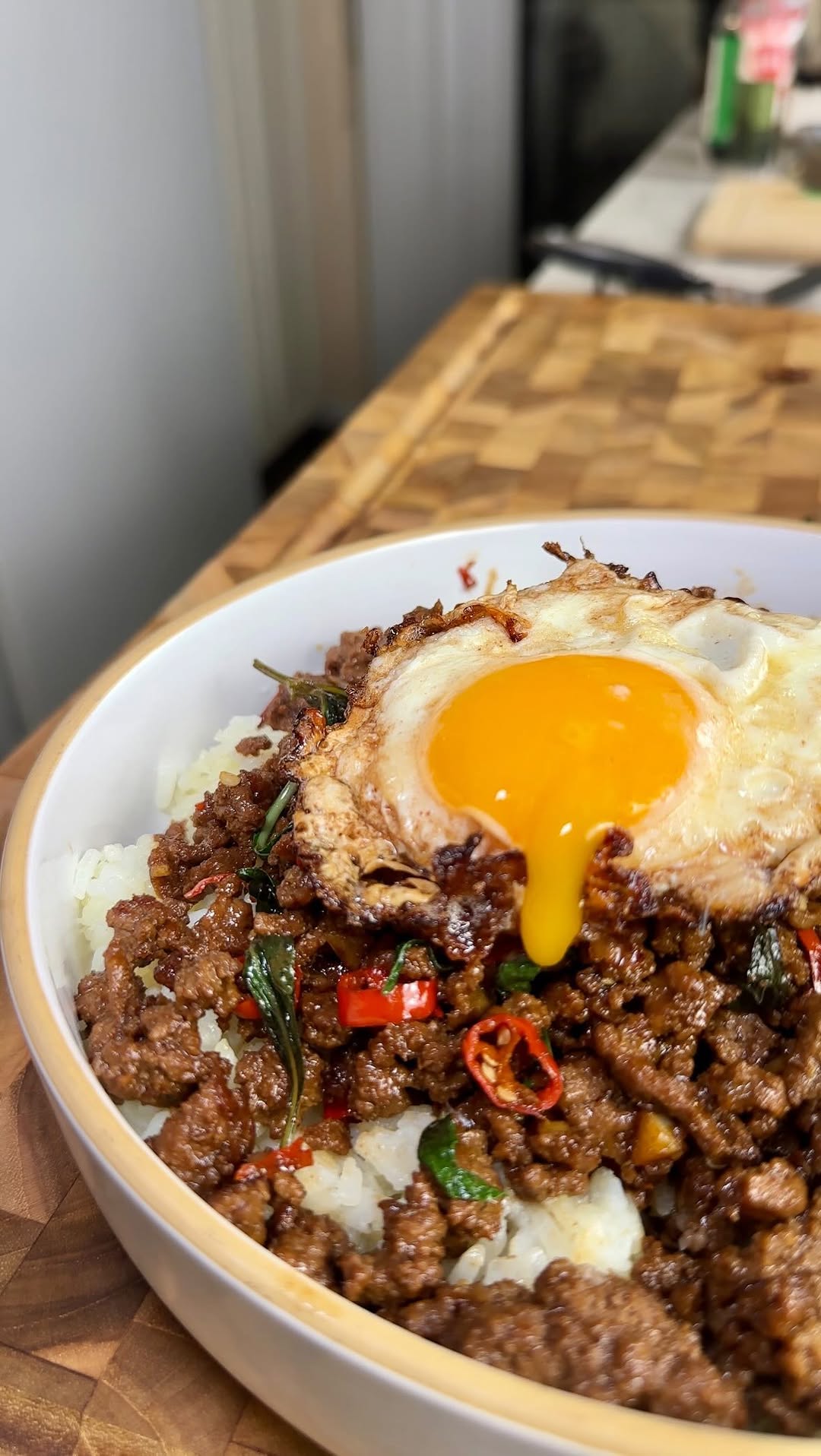 - ✓Cook ground beef on high heat (400°F+ pan surface) without stirring for 2-3 minutes to develop proper Maillard browning, as moving it too early creates steam and prevents the golden crust essential to authentic pad kra pao.technique400°F+ surface temp, 2-3 minutes