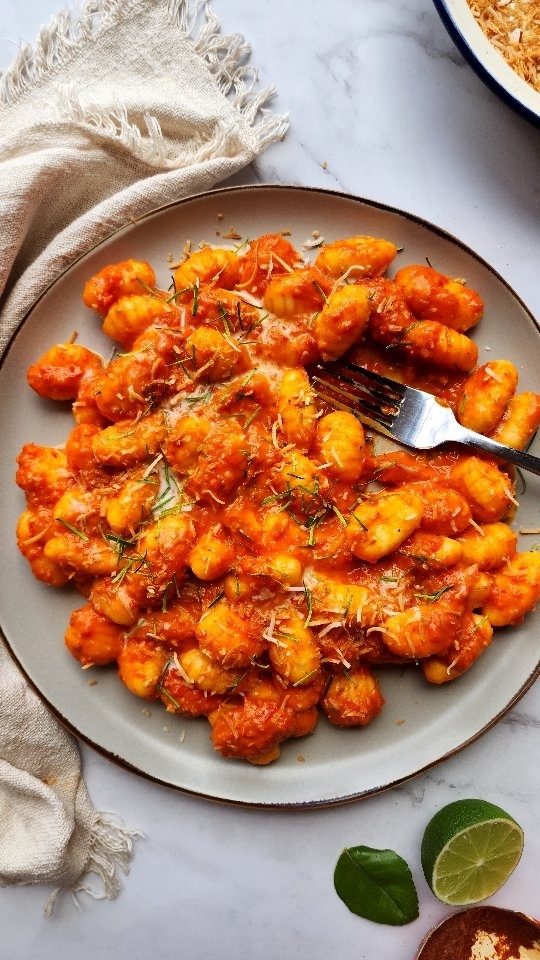 - ✓Reserve 1/4 cup pasta cooking water before draining gnocchi - the starchy, salted water helps bind the coconut-based sauce to the pasta and prevents separation.technique1/4 cup pasta water