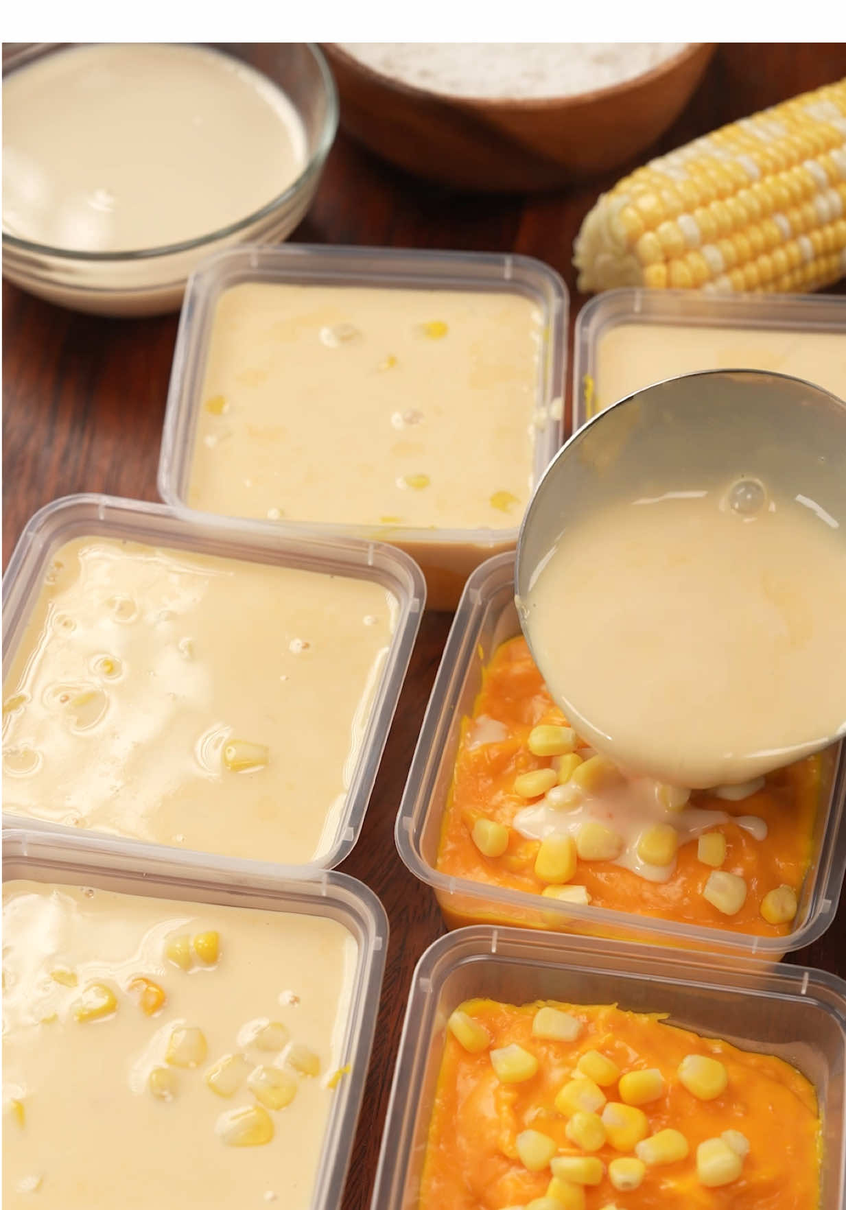 - ✓Use a 2:1 ratio of evaporated milk to coconut milk because evaporated milk's concentrated proteins provide better gel structure while coconut milk adds richness without overpowering corn flavor.ingredient2:1 ratio