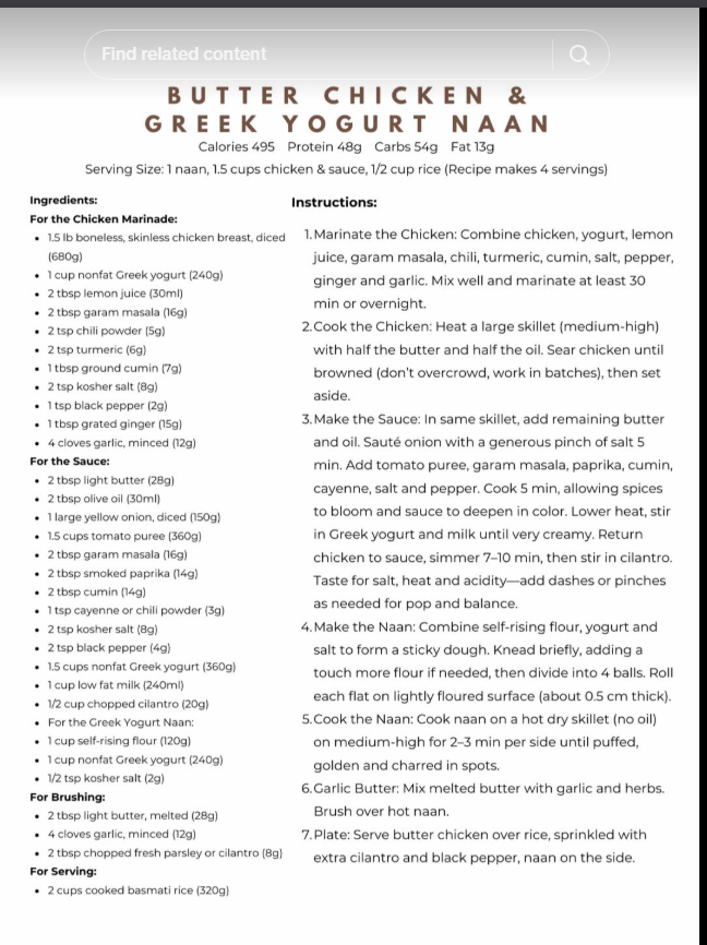 Butter Chicken & Greek Yogurt Naan