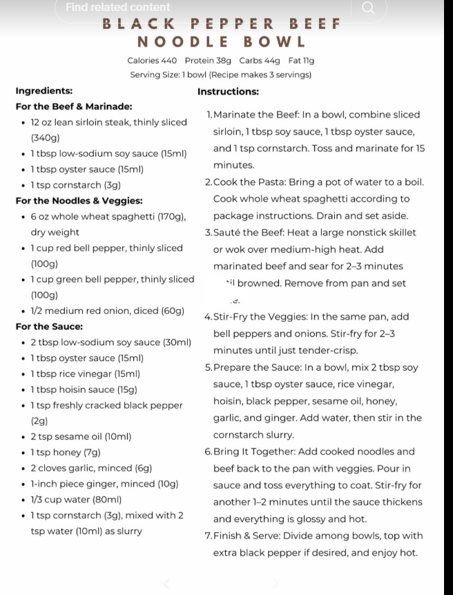 Black Pepper Beef Noodle Bowl