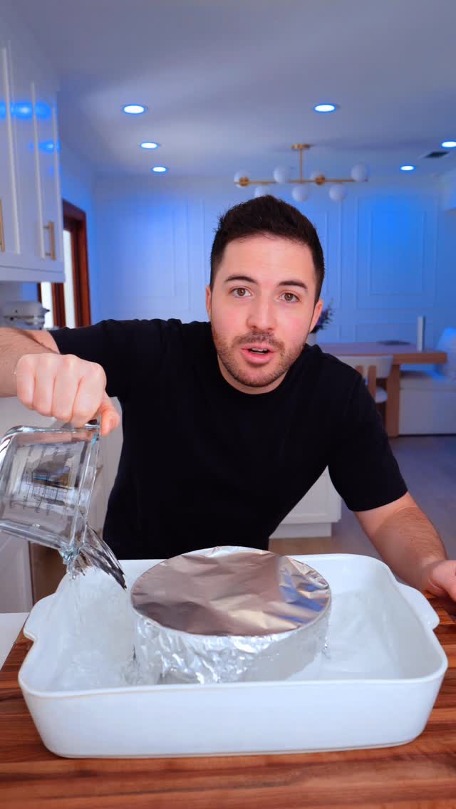 Pour your flan mix onto the same ramekin and place the ramekin in a water bath. Cover with aluminum foil.